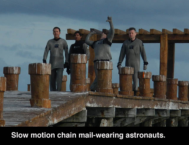 In the afternoon we headed out again for my second try at hand feeding. To hedge our bets a little, we sent Charlie down 15 minutes before us to chum in advance. He sent up a float a few minutes later to tell us the sharks were ready. When we got down there, Charlie had the sharks in a flurry of activity. I swam right up to him and took over feeding. I had a really huge female taking fish after fish from my hand! And even though I had fed plenty of sharks before, I was glad to have the chain mail on—just in case!